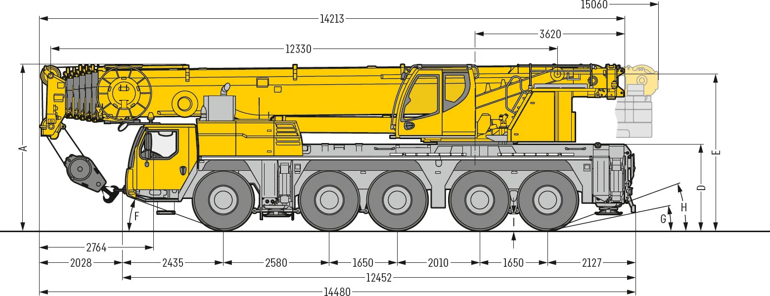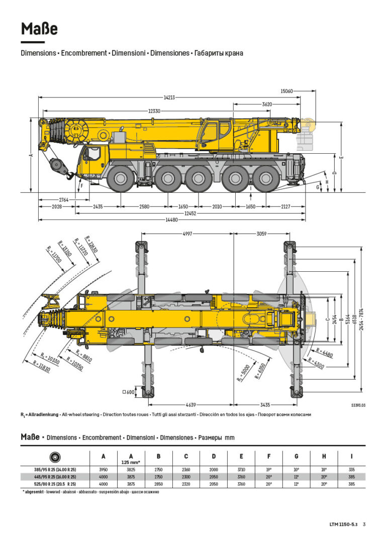 The Liebherr LTM 1150-5.3 is a standout 5-axle all-terrain crane blending high lifting power, long reach, and transport efficiency. With a telescopic boom of 66 m, plus lattice jib extensions for hook heights up to 92 m, it delivers excellent performance for demanding lifts.
